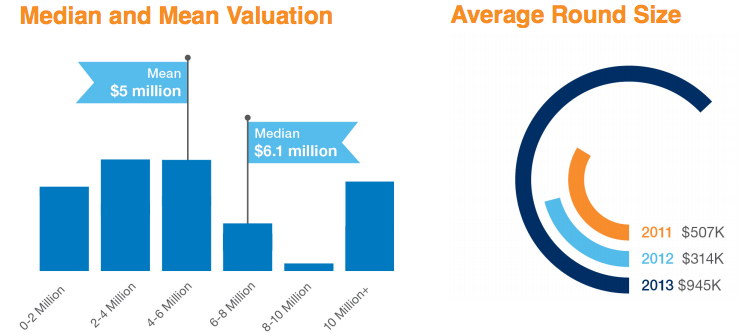 Moreover, angels appear “increasingly able and willing” to give follow-on funding to carry companies through the next stages of growth. The amount invested in follow-on rounds was at least 51 percent of the total amount invested in 2013, up from 42 percent in 2011 and 18 percent in 2012.