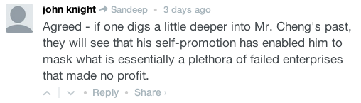 The article in question played up Cheng’s “go big or go home” attitude when it came to business. The comment was this: