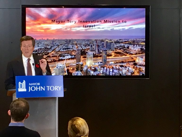 “I want to learn about the rapid growth we’ve seen in Israel’s innovation ecosystem, and bring back those lessons so that we can grow our own FinTech and technology sectors here in Toronto,” Tory said during the press conference. “I believe that we have much to learn, and can facilitate great business opportunities and relationship-during for our delegates.”