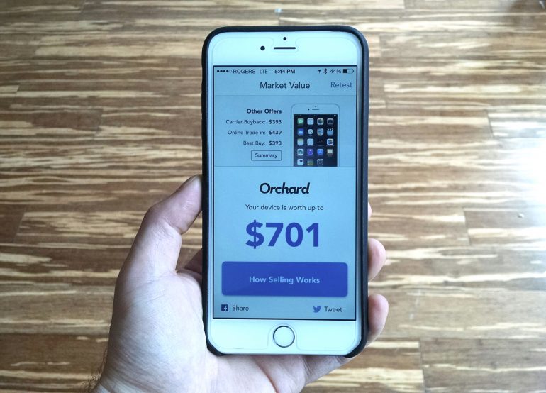 But Orchard is something different, and it’s arrived at the right time in a quickly-changing North American wireless market. Based out of Toronto, Orchard deals exclusively in used iPhones – for now – combining a thorough app-based diagnostic procedure with a curated element. After the sequence of testing is done, Orchard spits out a value for the device – well, three values – determined by the current state of the market.