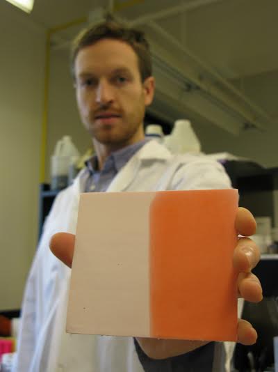 A typical startup story often begins with two co-founders meeting at a university. Lunanos Inc. is currently based out of The Impact Centre at U of T, and uses its wet labs and other equipment to carry out all the necessary research. Most recently, Lunanos has lined up several hospitals to test its cleaning indicator sticker coated with its ink formulation. It’s easy to see one side has been disinfected and wiped – it’s a different colour (orange) than the other side.