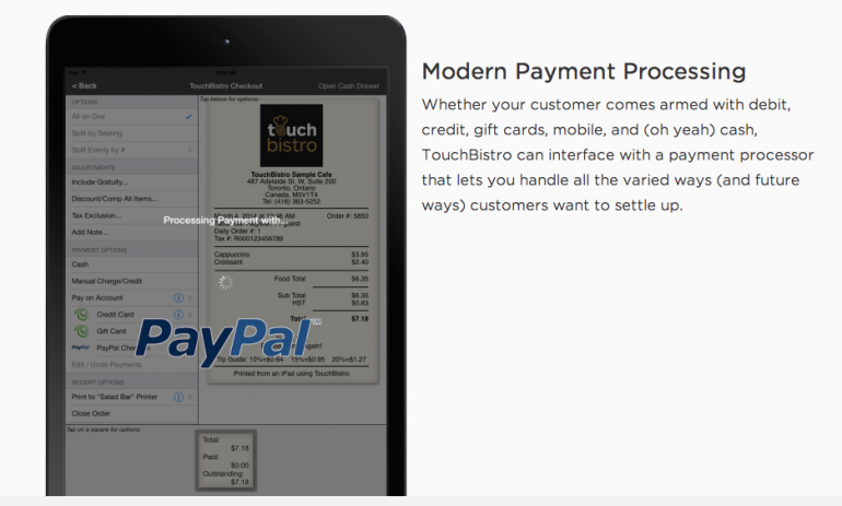 TouchBistro processed approximately $500MM in transaction value in 2013 from more than 1,000 merchants, including full service restaurants, quick service restaurants, food trucks, coffee shops and other food and drink venues. The company brings “mobile innovation to the food and beverage industry,” providing a modern point-of-sale (POS) solution with smart features, integrated with different payment processing options, at a lower cost. Servers use the TouchBistro iPad app to take tableside customer orders, and instantly submit them to the kitchen and bar. It’s supposed to eliminate the need for servers to enter a customer’s order into a separate, distant terminal, which minimizes order errors and increases operations efficiency.