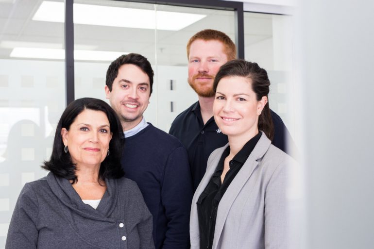 Left to right: XpertSea co-founders Sylvie Lavigne (Vice-President), François Robitaille (Head of Finance), Cody Andrews (Engineer), and Valérie Robitaille (CEO). Photo courtesy of XpertSea. (CNW Group/XpertSea)
